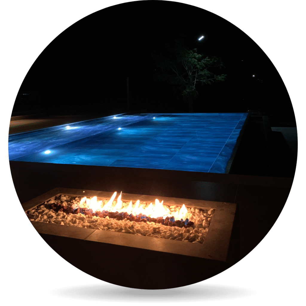 Diseñamos e instalamos centros de fuego a gas para terrazas y exteriores. Transforma tu zona social con un fuego limpio y elegante.